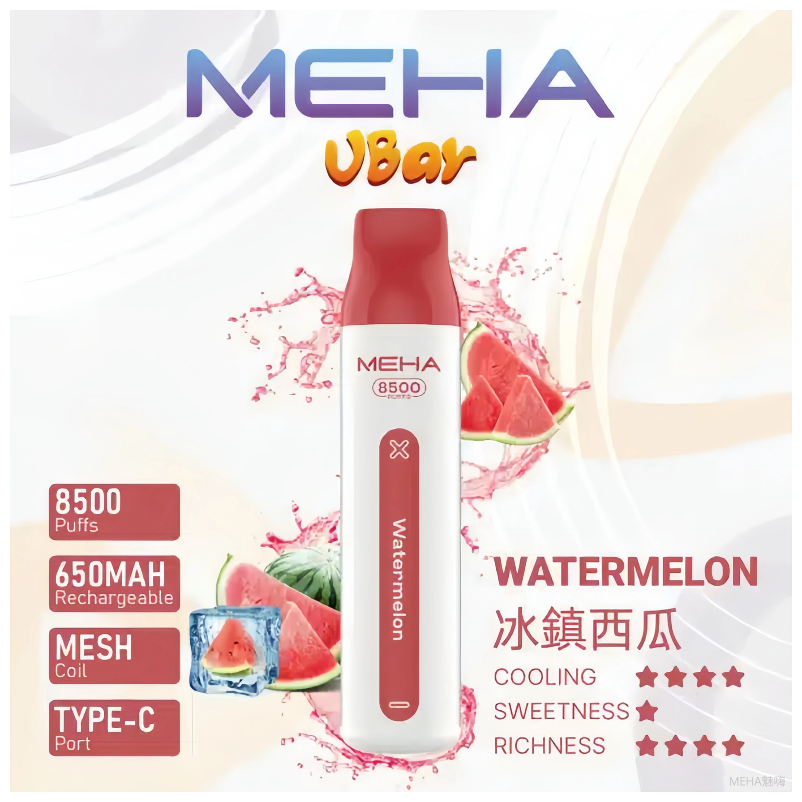 MEHA魅嗨一次性拋棄式電子煙VBar小白條 8500口【西瓜】